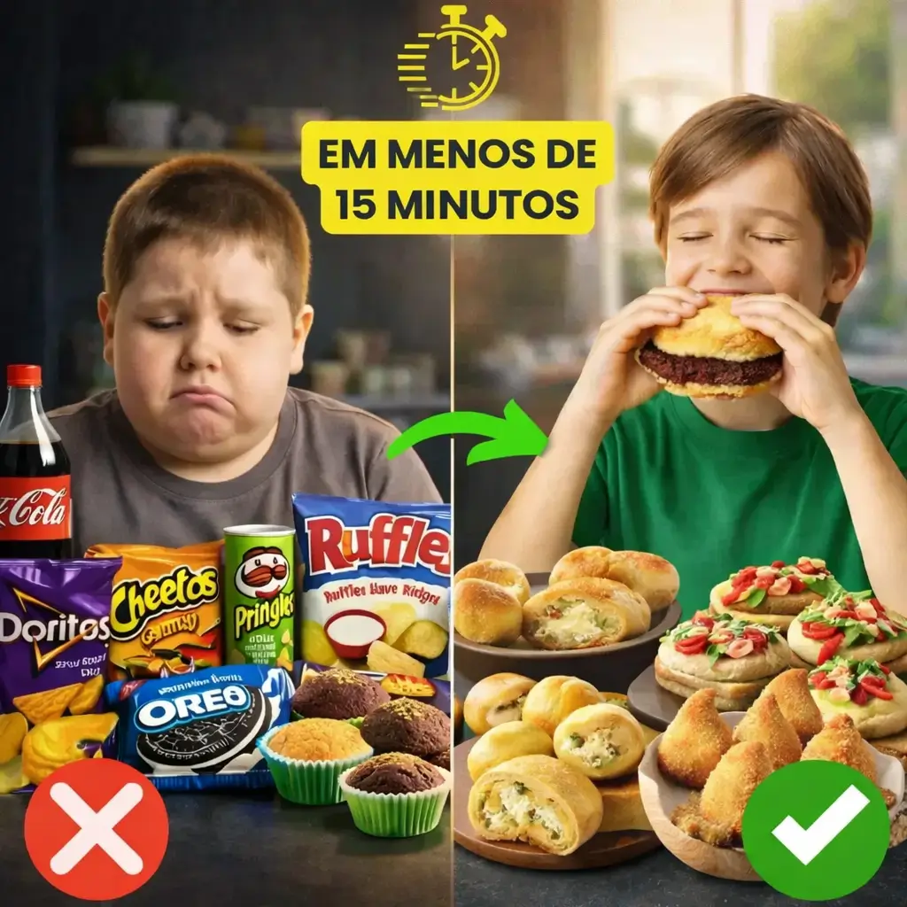 Faça versões saudáveis das comidas que seu filho ama. Sem açúcar, sem glúten e prontas em minutos. Assim, você mata a vontade dele de “besteira” sem sair da alimentação saudável.